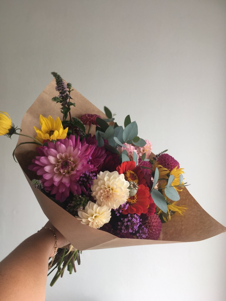 I offer seasonal bunches and bouquets, flower arrangers buckets and subscription flowers for local delivery from May to October as well as gift vouchers all year round. I also offer wedding buckets for DIY brides and bridal party floristry. If you’d like to know more about our wedding flowers, click here.