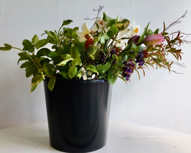 Flower arranger buckets will be “makers choice”, a selection of the best blooming flowers and foliage at the time of picking.